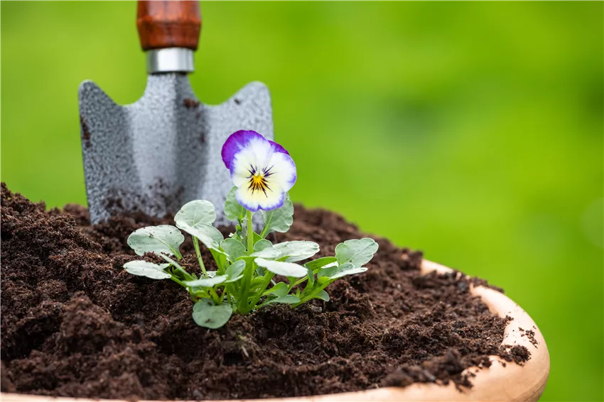 Erde - Hornveilchen einpflanzen Nicht nur Zwiebel- und Knollenpflanzen sind beliebte Frühblüher für Balkon und Terrasse. Es gibt noch mehr Kandidaten, die auf kleinsten Raum für ein echtes Blütenmeer sorgen können. Wie wäre es also mit Hornveilchen oder Primel? Beide Kandidaten sind sehr unempfindlich gegen Frost und zeigen schon früh im Jahr die ersten Blüten. Wenn es also um Frühblüher für Balkon und Terrasse geht, hat vor allem das Hornveilchen die Blütenköpfe ganz vorne. Je nach Sorten blühen die Pflanzen von Februar bis Mai und wischen damit den tristen Winterschleier vom Balkon oder von der Terrasse. Auch das Buschwindröschen passt in den Kübel. Mit ihren weißen, rosa oder blauen Blüten sorgt die Pflanze für Aufsehen und zeigt ihre Blüten ab Februar bis in den April hinein. Leberblümchen sorgen mit ihren kleinen violetten Blüten ebenfalls für farbliche Akzente. Sie zeigen sich von März bis April und verkürzen das Warten auf die neue Gartensaison. Wenn es um besondere Blüten geht, dann gibt es viele Frühblüher für Balkon und Terrasse. Und falls die Sommerbepflanzung schneller weichen muss als gedacht, können die Frühblüher einfach ins Gartenbeet gesetzt werden.