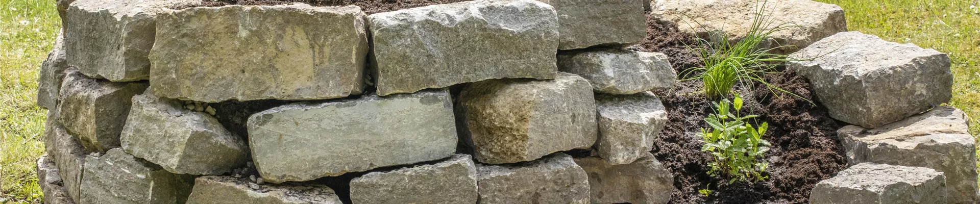 Damit sich die Kräuter in der Kräuterspirale auch so richtig wohl fühlen und gut gedeihen, sollte der Standort für die Kräuterspirale sonnig und windgeschützt sein. Natürlich kommt der Standort auch ganz darauf an, welche Kräuter in der Kräuterspirale wachsen sollen. Schnittlauch, Petersilie und Basilikum fühlen sich im Schatten nämlich viel wohler. Sonnenanbeter wie Rosmarin, Thymian und Lavendel brauchen allerdings die Sonne, damit sie gut wachsen können. Ist der richtige Standort gefunden, wird der Grundriss der Kräuterspirale mit Stöckern abgesteckt. Die Stöcker werden dann mit einer Schnur verbunden und bieten beim Bau der Spirale Orientierung. Die Form sollte dabei einem Schneckenhaus ähneln.