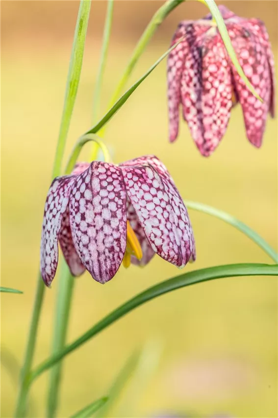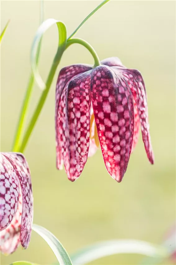Fritillaria meleagris Schachbrettblumen haben keinen ihrer Namen von ungefähr. Im botanischen Namen findet sich eine Anspielung auf das Perlhuhn (Numida meleagris), dessen Gefieder der Zeichnung der Blume ähnelt. Landläufig wird die Blüte mit einem Schachbrett oder einem Kiebitzei verglichen. Die besondere Zeichnung macht Schachbrettblumen zu einem besonderen Hingucker im Garten. Sie werden bis zu 35 Zentimeter hoch. Schmale, elegante Blätter umrahmen die glockenförmige und überhängende Blüte. Mit ihrer Blütezeit von April bis Mai gelten Schachbrettblumen als Frühblüher. Bei allen unter Naturschutz stehenden Pflanzen sollten Sie beim Kauf die Herkunft hinterfragen. Kaufen Sie nur Pflanzen, die definitiv aus gärtnerischer Vermehrung stammen!